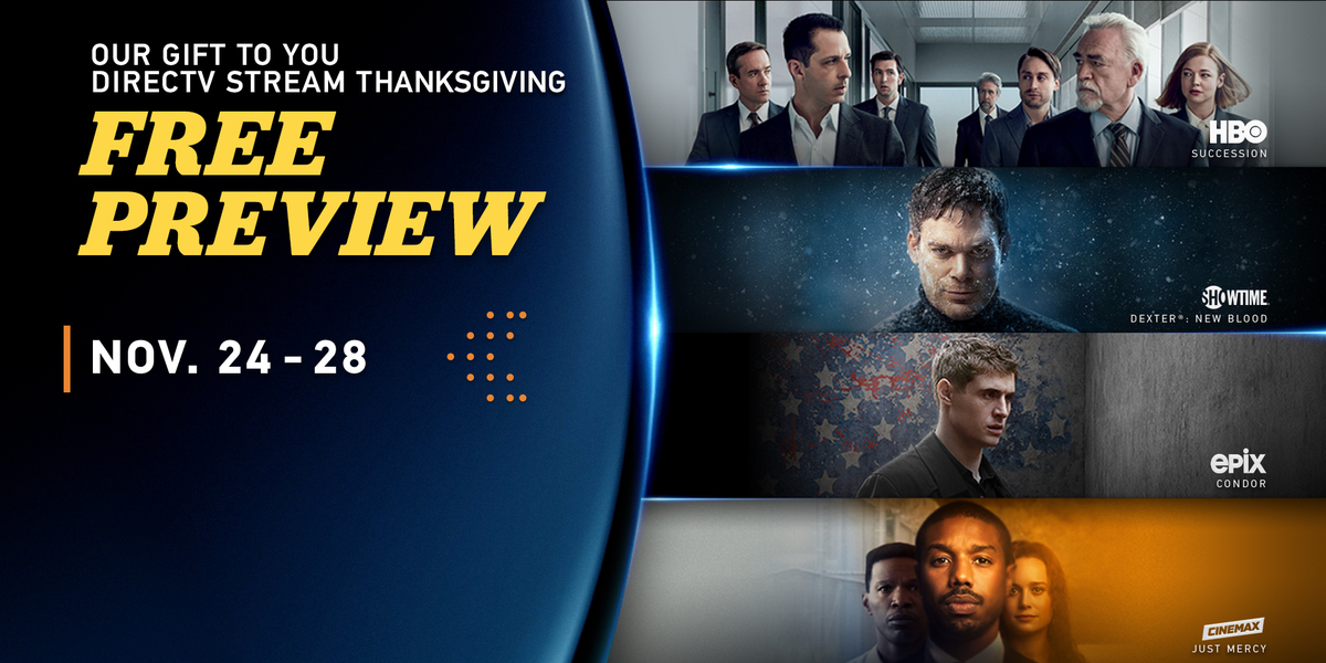 This is a public forum full of customers just like you. Up to 200 cash back DIRECTV STREAM Thanksgiving Free Preview. The DIRECTV FREE premium channel preview runs from November 24th to the 27th.